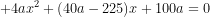 ( 4ax2 + (40a – 225)x + 100a = 0